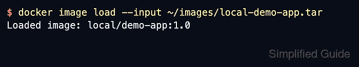 $ docker image load --input ~/images/local-demo-app.tar Loaded image: local/demo-app:1.0