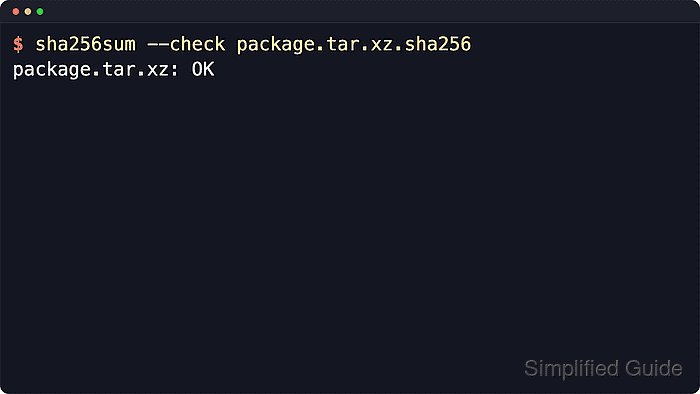$ sha256sum --check package.tar.xz.sha256 package.tar.xz: OK