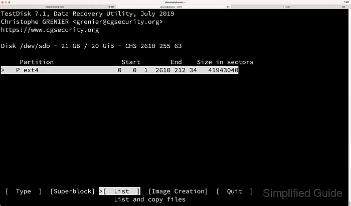 - Confirm that the recovery tools are installed, and add the packages commonly named testdisk and lsof with your distribution package manager if they are missing.