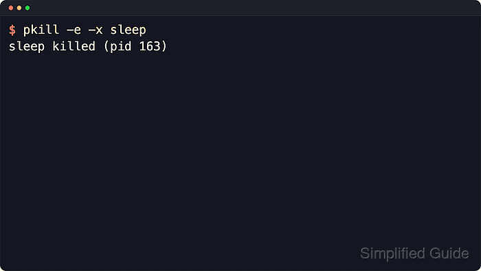 $ pkill -e -x sleep sleep killed (pid 163)