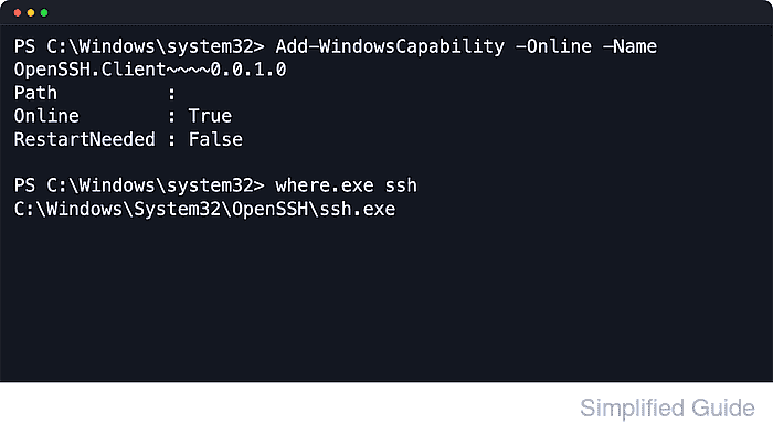 - Verify that the built-in OpenSSH client command is now on the system path.