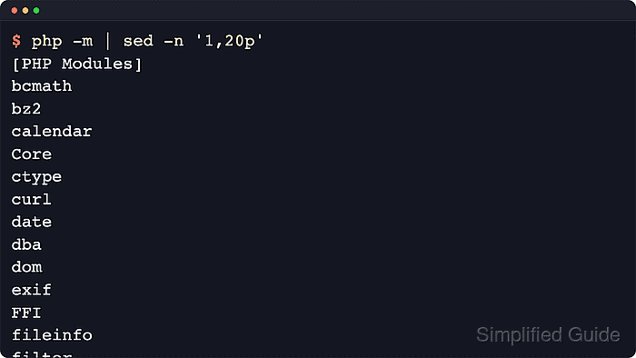 $ phpquery -v 8.3 -s cli -m curl curl (Enabled for cli by local administrator) $ php -m | grep --ignore-case '^curl$' curl