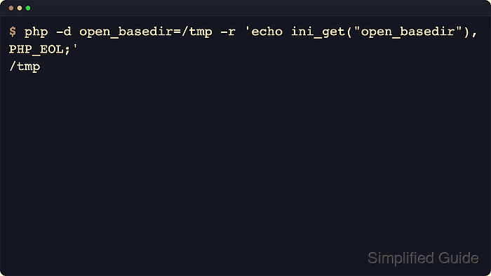 $ sudo tee /var/www/example.com/public/open-basedir-check.php >/dev/null <<'PHP' <?php header('Content-Type: text/plain'); echo ini_get('open_basedir'), PHP_EOL; PHPReplace /var/www/example.com/public/ with the document root served by the target virtual host.