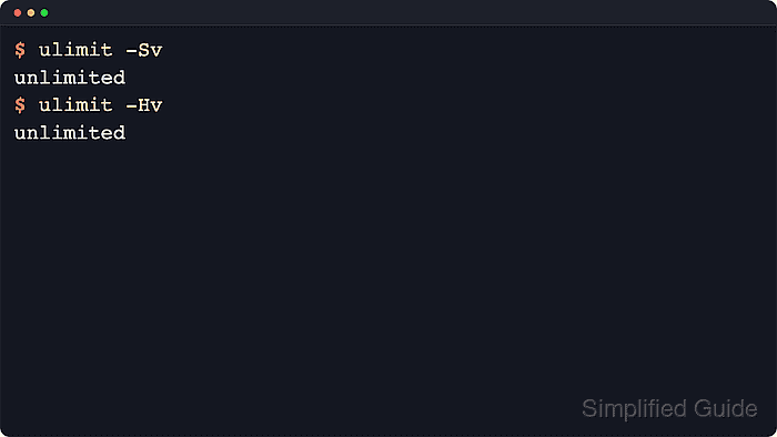 $ python3 - <<'PY' import resource soft, hard = resource.getrlimit(resource.RLIMIT_AS) print(f"soft={soft}") print(f"hard={hard}") PY soft=-1 hard=-1Compare against resource.RLIM_INFINITY in code instead of hard-coding -1 ; on Linux, an unlimited RLIMIT_AS is commonly reported as -1 .