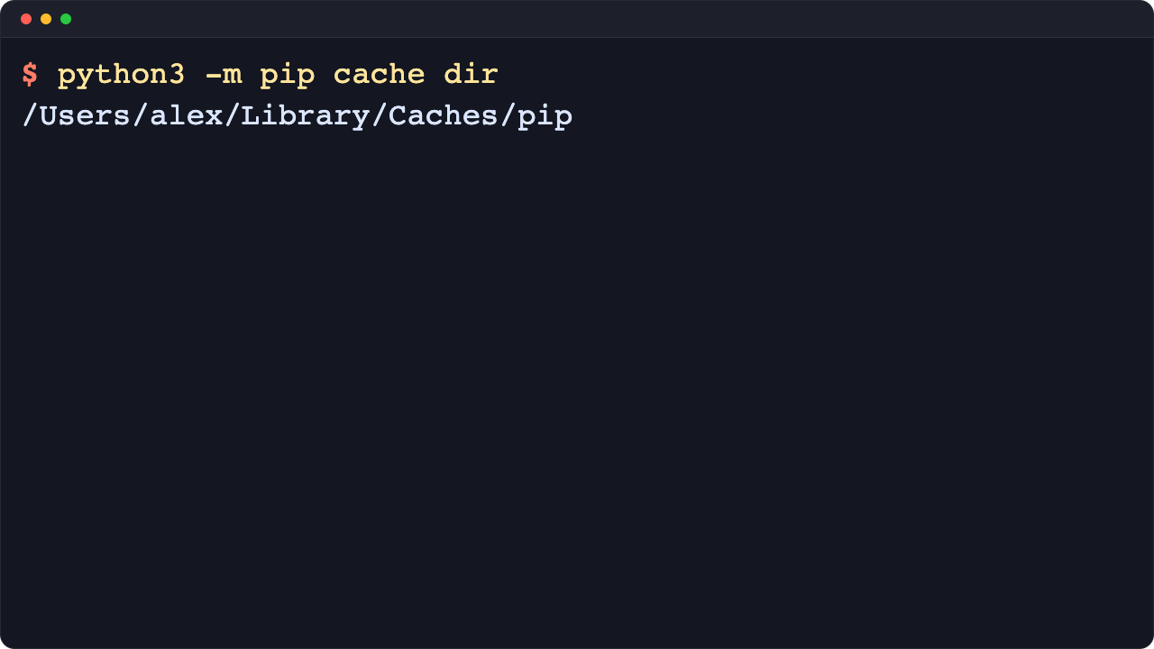 $ python3 -m pip cache dir /Users/alex/Library/Caches/pip