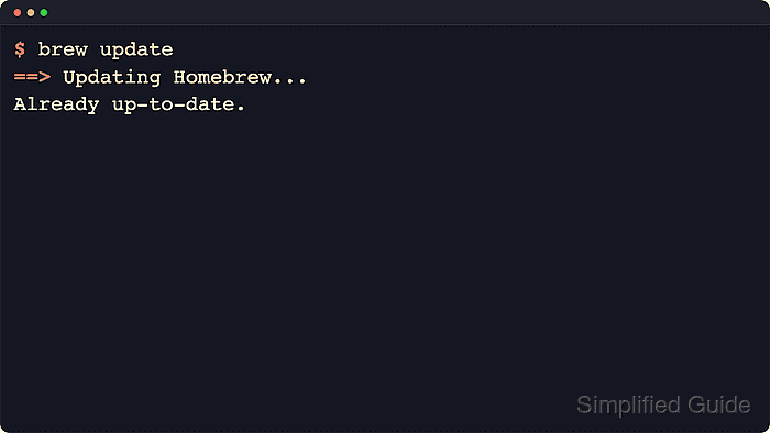 $ brew update ==> Updating Homebrew... Already up-to-date.