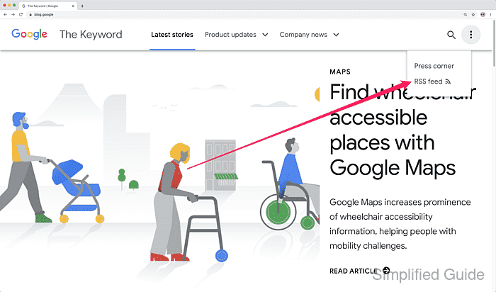 - Navigate to the site via web browser and search for RSS feed link or icon.