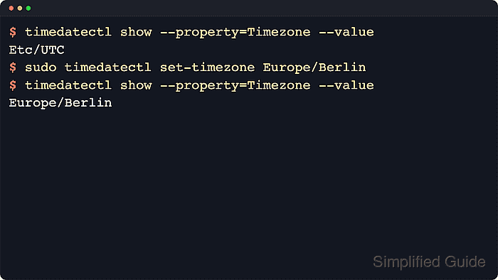 $ sudo timedatectl set-timezone Europe/Berlin