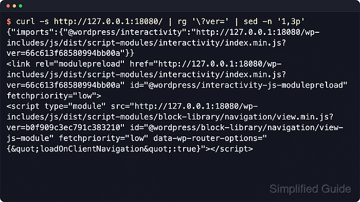 $ curl -s https://www.example.com/ | rg '/wp-content/.+(site\\.css|app\\.js)\\?ver=' <link rel='stylesheet' id='site-style-css' href='https://www.example.com/wp-content/themes/example/assets/css/site.css?ver=1743210025' type='text/css' media='all' /> <script src='https://www.example.com/wp-content/themes/example/assets/js/app.js?ver=build-a1b2c3d4' id='site-app-js'></script>